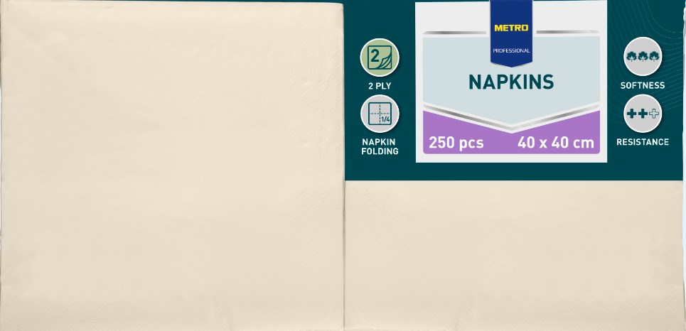 METRO PROFESSIONAL Servítky 2 vrstvové 40 cm krémové 250 ks