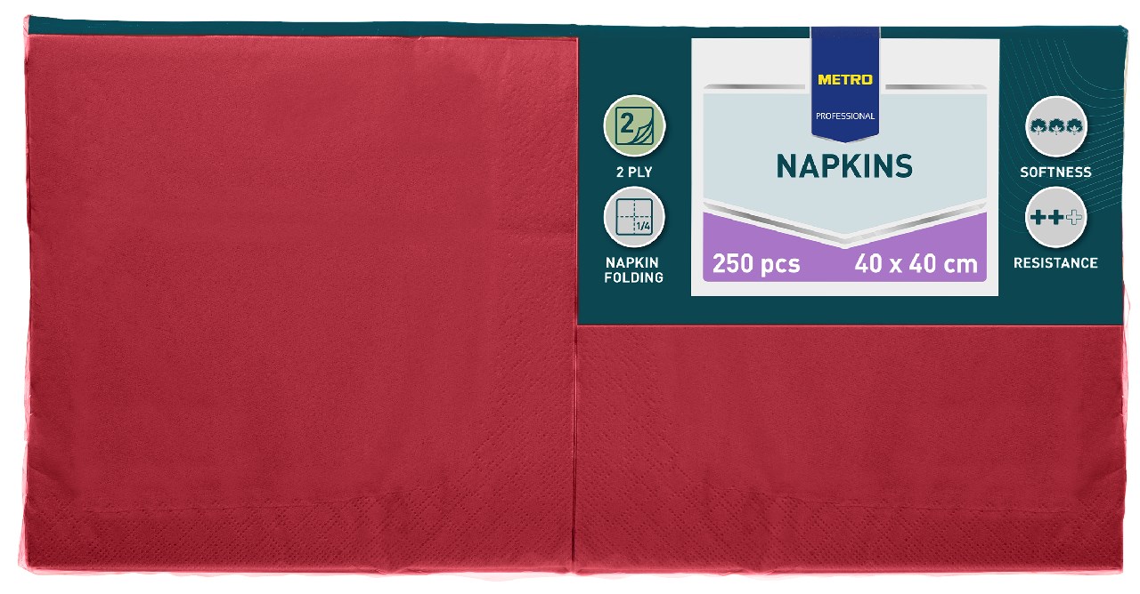 METRO PROFESSIONAL Servítky 2 vrstvové 40 cm bordové 250 ks