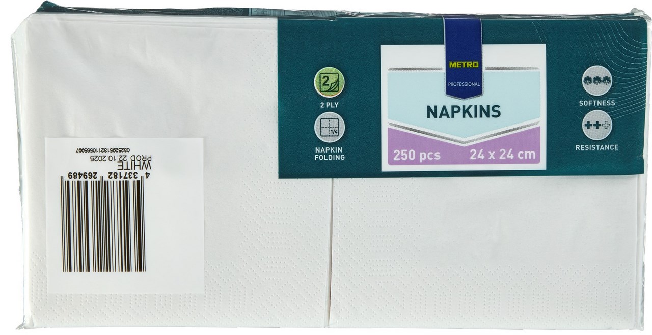 METRO PROFESSIONAL Servítky 2 vrstvové 24 cm biele 250 ks