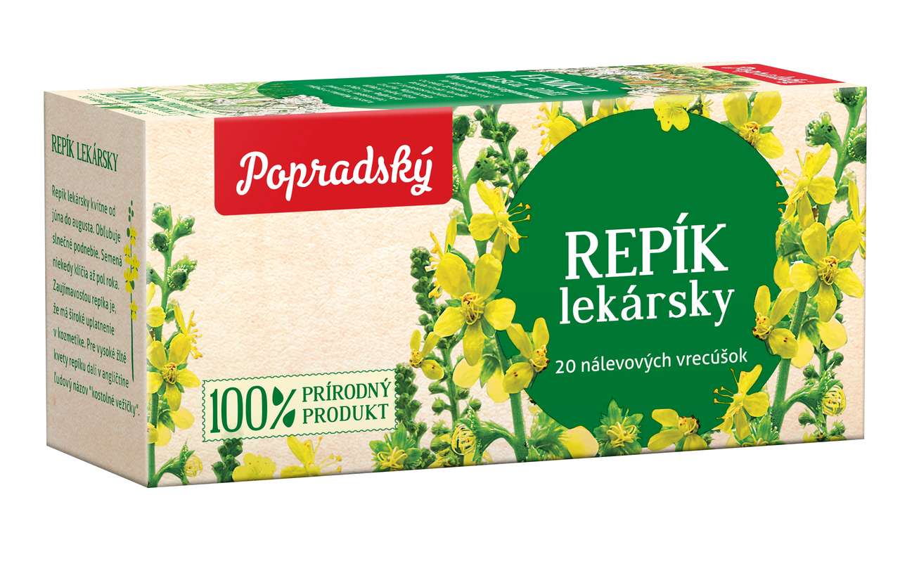 - repík lekársky (Agrimonia eupatoria – herba 100%) (*4,5g). *Množstvo zložiek s fyziologickým účinkom na odporúčanú dennú dávku.