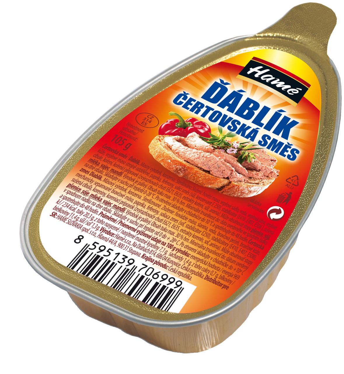 - Mäsový výrobok, konzerva. Sterilizované.