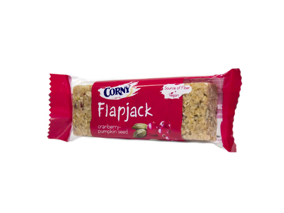- Corny Flapjack cramberry-pumpkin seed, ovsená tyčinka s brusinkami
