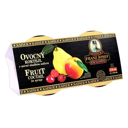 - Ovocný koktail v sladkom náleve. Spracované, pasterizované ovocie s nálevom.