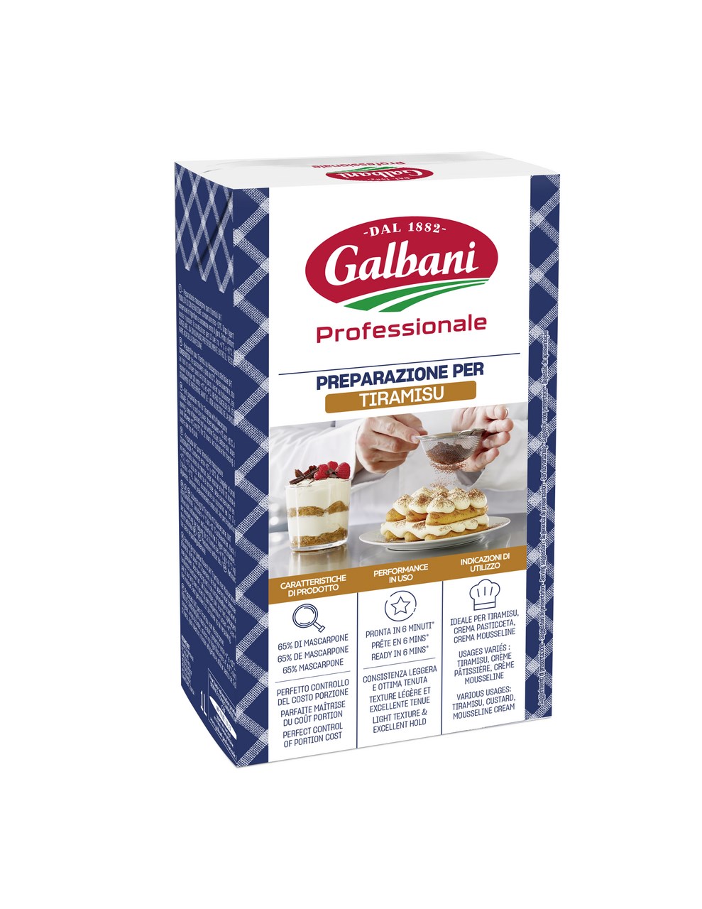 - syr mascarpone 65%, (smotana, sušené odtučnené mlieko, regulátor kyslosti: kyselina citrónová), odtučnené mlieko, cukor, vaječný žĺtok, modifikovaný kukuričný škrob, emulgátor: E471, zahusťovadlo: karagenan, vanilková aróma, farbivo: beta-karotén.