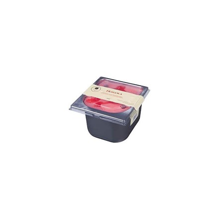 - pitná voda, jahodové pyré a dreň (17%), cukor, rehydratované odstredené MLIEKO, plnotučné MLIEKO, dextróza, glukózový sirup, dekorácie: kandizované jahody (0,5%) [jahody, glukózovo-fruktózový sirup, cukor, regulátor kyslosti (kyselina citrónová), konzervant (sorban draselný)], regulátor kyslosti (kyselina citrónová), jahodová omáčka (0,3%) [cukor, pitná voda, glukózový sirup, jahodový pretlak, modifikovaný kukuričný škrob, regulátor kyslosti (kyselina citrónová), aróma, stabilizátor (agar), farbivo (antokyaníny)], stabilizátory (karboxymetylcelulóza, guarová guma, alginát sodný, sorbitol, pektíny), maltodextrín, prírodná aróma, emulgátor (mono- a diglyceridy mastných kyselín), jedlá soľ.