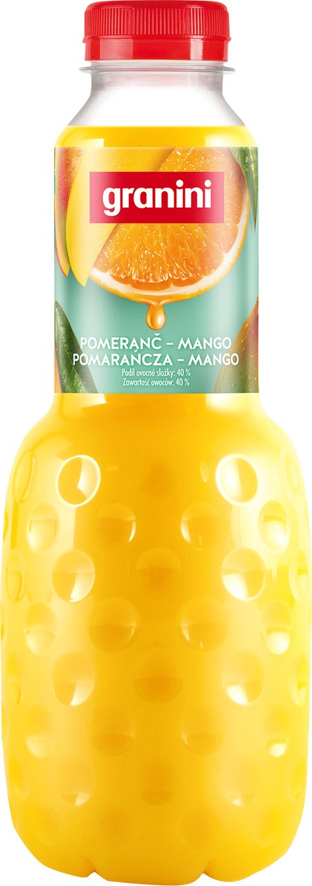 - voda, pomarančová šťava z koncentrátu 32 %, mangová dreň 8 %, cukor, kyselina: kyselina citrónová, prírodná aróma, vitamín C