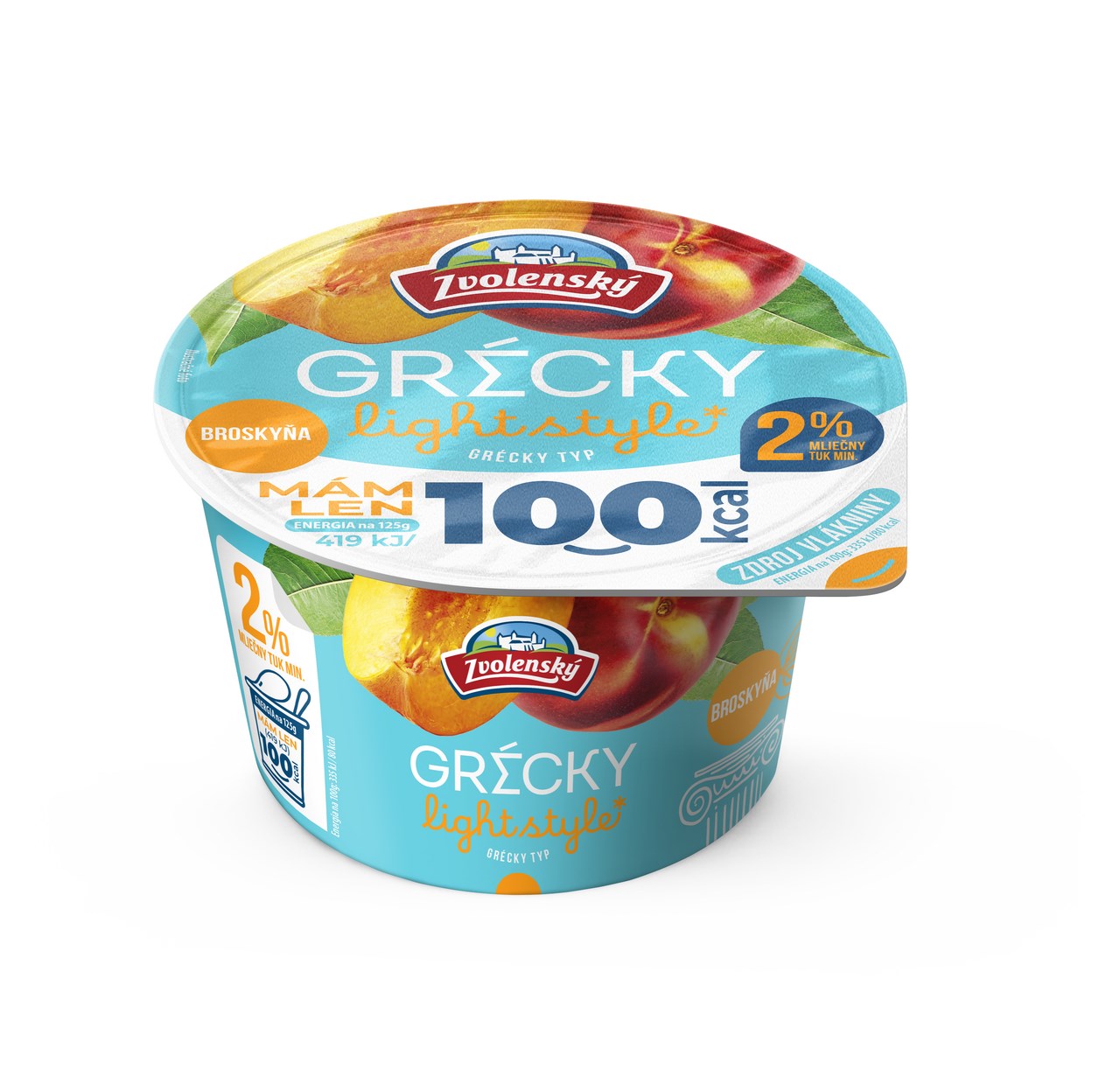 - jogurtová zložka (mlieko, smotana, sušené odtučnené mlieko, mliečne bielkoviny, jogurtová kultúra), ochucujúca zložka broskyňová 25%