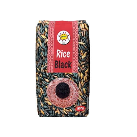 - Ryža dlhozrnná čierna lúpaná. Vyrobená z ryže siatej (Oryza sativa L.)