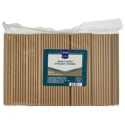 METRO PROFESSIONAL Slamky papierové 197 x 6 mm hnedé 500 ks