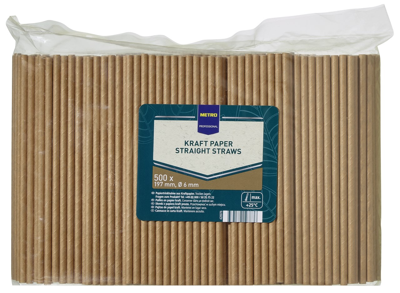 METRO PROFESSIONAL Slamky papierové 197 x 6 mm hnedé 500 ks