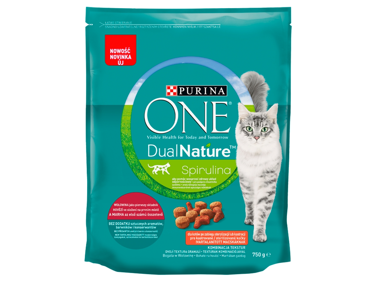 PURINA One Dual Nature Sterilcat granuly s hovädzím a spirulinou 750 g