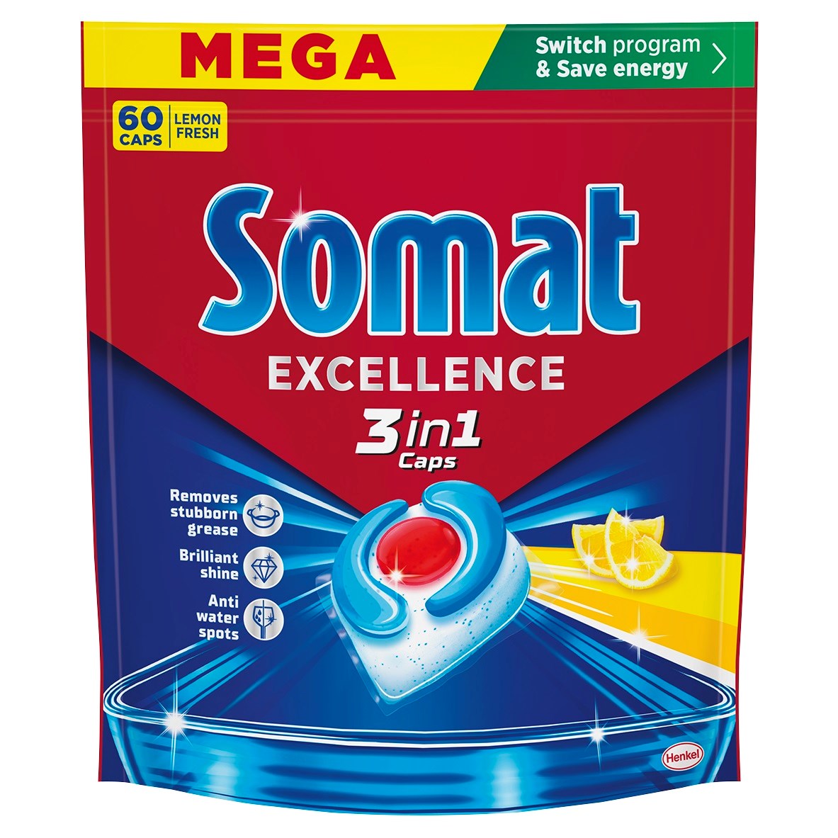 Somat Excellence 3in1 Lemon kapsuly do umývačky 60 ks