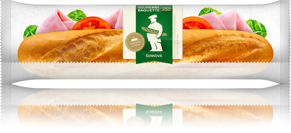 - Lahôdkársky výrobok – obložená pšeničná bageta s bravčovou šunkou, dresingom a čerstvou zeleninou