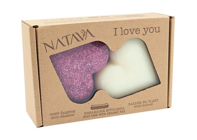 NATAVA Srdce darčeková sada (tuhý šampón + balzam + mydelnička) kazeta