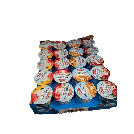 - Smotanový jogurt čokoládový s višňou JOGURTOVÁ zložka (SMOTANA, JOGURTOVÁ KULTÚRA), ochucujúca zložka čokoládovo-višňová 15% hmot.(cukor, višne 20,0% hmot., voda, kakaový prášok so zníženým obsahom tuku, kukuričný škrob, čokoládový prášok 2,5% hmot., citrónový koncentrát, zahusťovadlo: pektíny; prírodná aróma). Smotanový jogurt čokoládový s lieskovými orieškami JOGURTOVÁ zložka (SMOTANA, JOGURTOVÁ KULTÚRA), ochucujúca zložka čokoládovo-oriešková 15% hmot. (cukor, voda, kakaový prášok so zníženým množstvom tuku, LIESKOVÉ ORIEŠKY 2,6 % hmot., kukuričný škrob, čokoláda v prášku 2,5 % hmot. (cukor, kakaový prášok), prírodná aróma, citrónový koncentrát). Smotanový jogurt vanilkový JOGURTOVÁ zložka (SMOTANA, JOGURTOVÁ KULTÚRA), ochucujúca zložka vanilková 15% hmot.( cukor, voda, kukuričný škrob, prírodná vanilková aróma, extrakt z papriky a kurkumy, citrónový koncentrát, vanilkový extrakt 0,01 % hmot.). Smotanový jogurt malin-černica JOGURTOVÁ zložka (SMOTANA, JOGURTOVÁ KULTÚRA), ochucujúca zložka malinovo-černicová 15% hmot. (cukor, maliny 15,1 % hmot., černice 14,9 % hmot., voda, kukuričný škrob, citrónový koncentrát, prírodné arómy, zahusťovadlo: pektíny, koncentrát čiernej mrkvy a hroznovej šťavy).